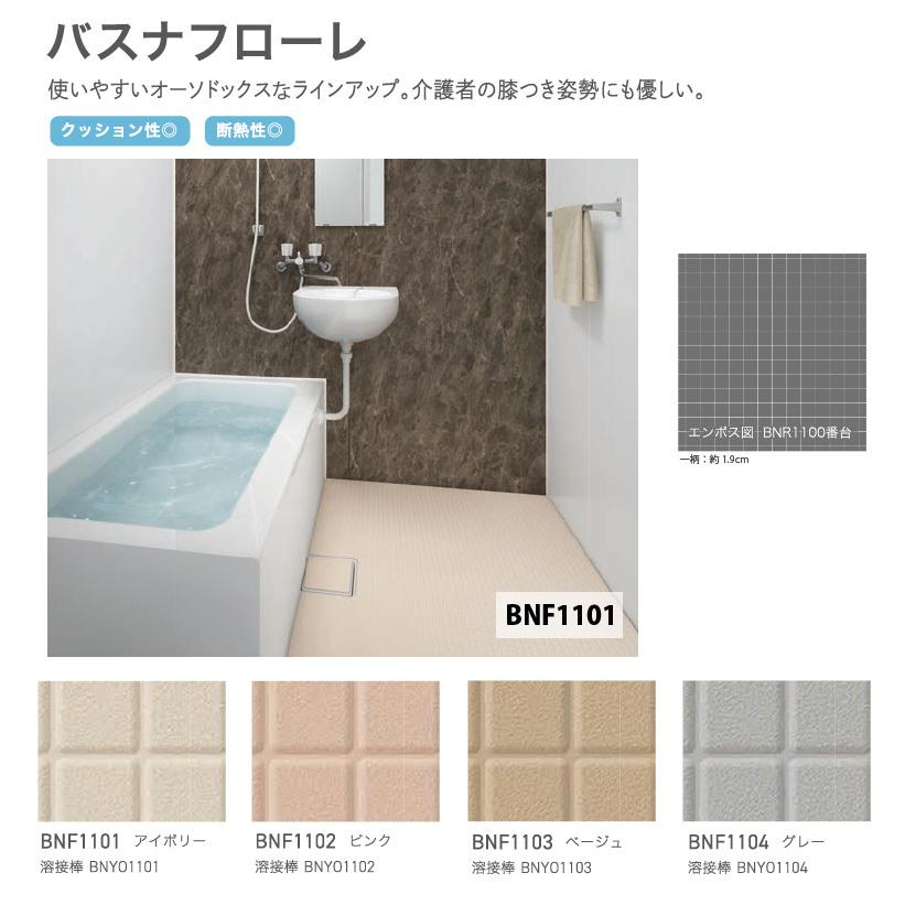 浴室 床 シート 床タイル マット お風呂 床 リフォーム 自分で 張り替え バスルーム diy 床材 浴室用床シート 抗菌 防カビ 東リ バスナフロー... bnf1101(アイボリー)